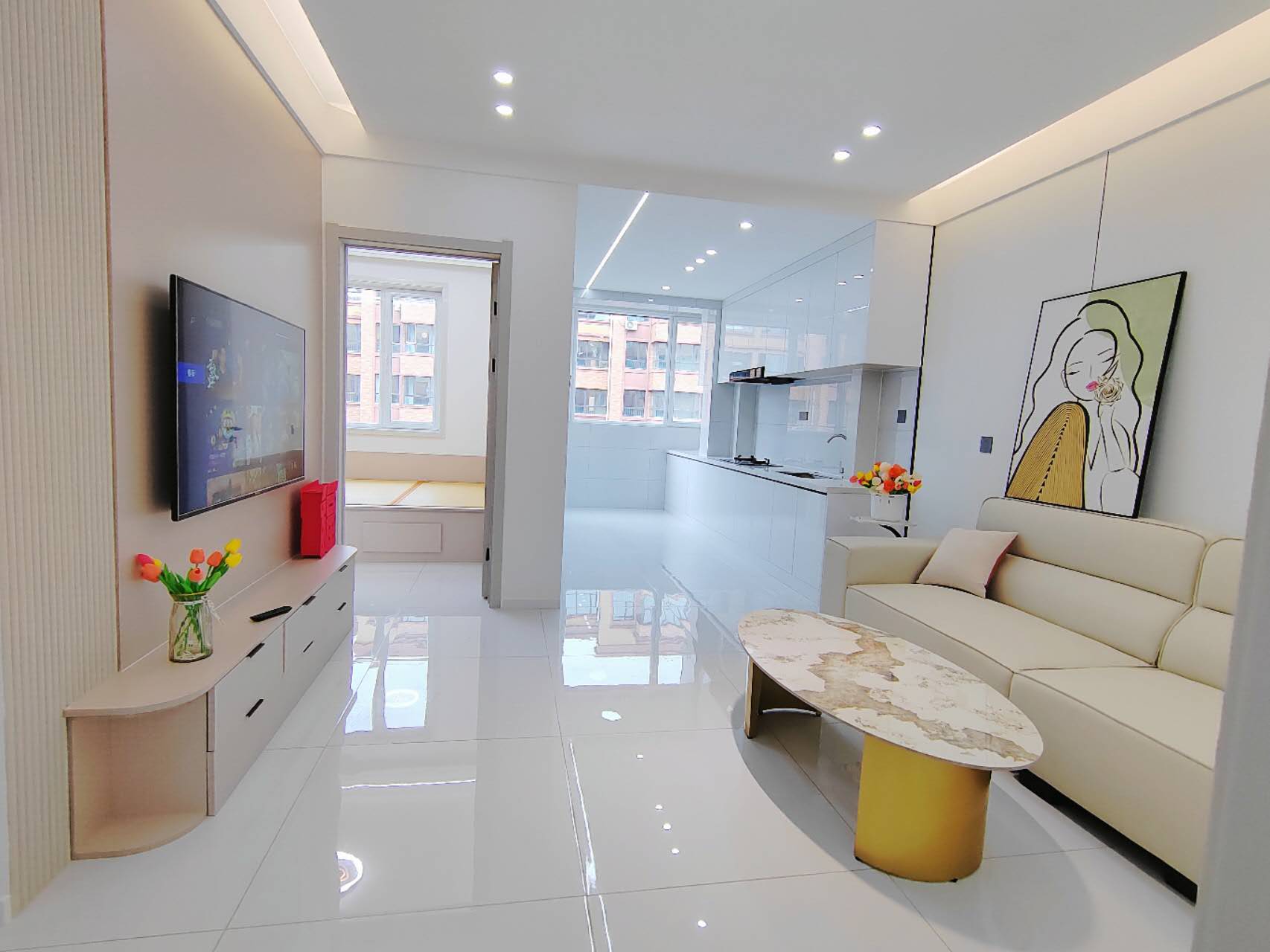 首付1万,环亚山城3楼,76.39平南北通透,全屋生态木品牌门板,电话微信同步