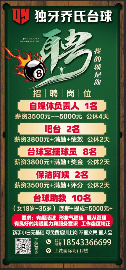 独牙台球俱乐部招贤纳士