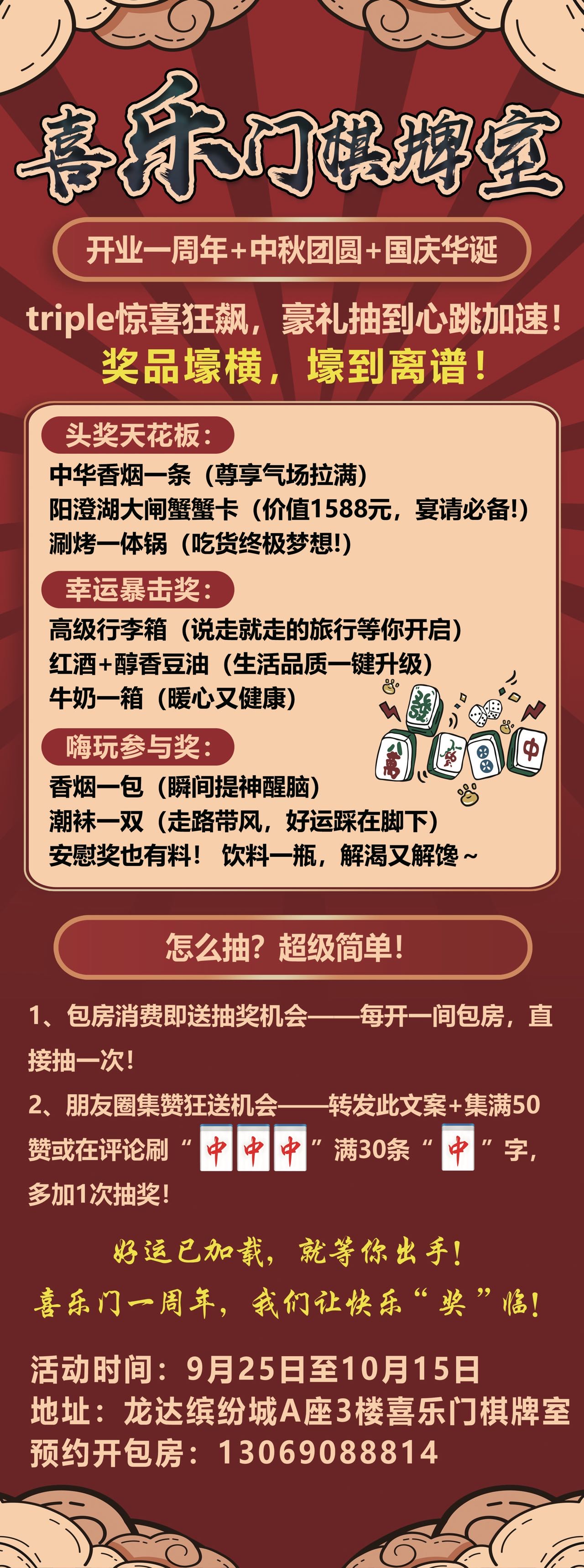 #【喜乐门棋牌室 | 三节同庆狂欢月】