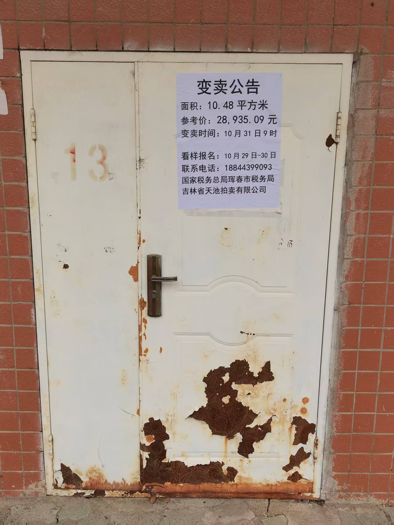 吉林省天池拍卖公司对珲春市加禾春景、中央公馆、月榕湾3个小区九处车库进行网络公开变卖。