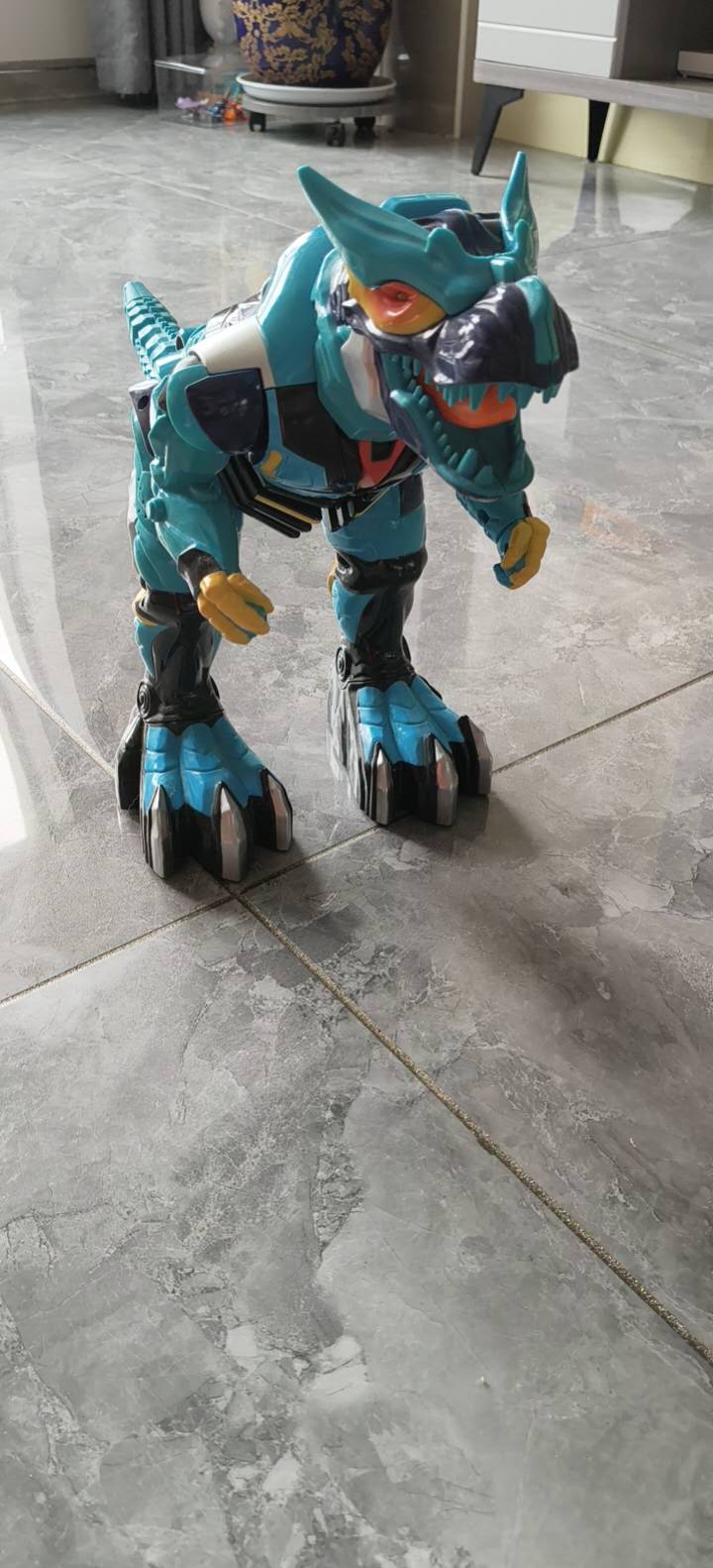 玩具恐龙,声控遥控。150元,自提!恐龙高35左右,侧面长40多点。宽17-18左右。恐龙充电的,遥控器用电池的。