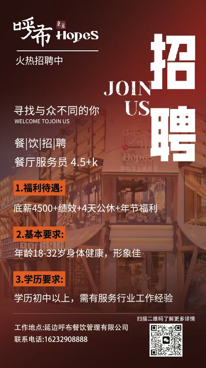 呼布餐饮招聘 服务员 男生女生都可以 工资4500加记效奖 保洁工资面议 假期工若干名招聘地点 环亚山城D118号 港通国际公司连系电话130****8082