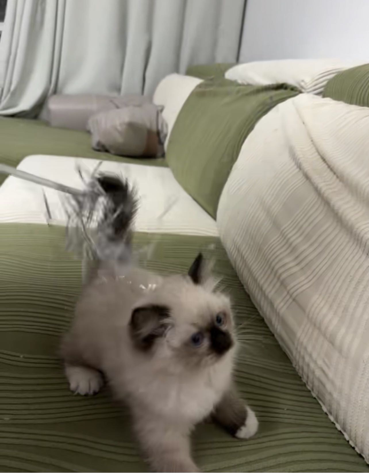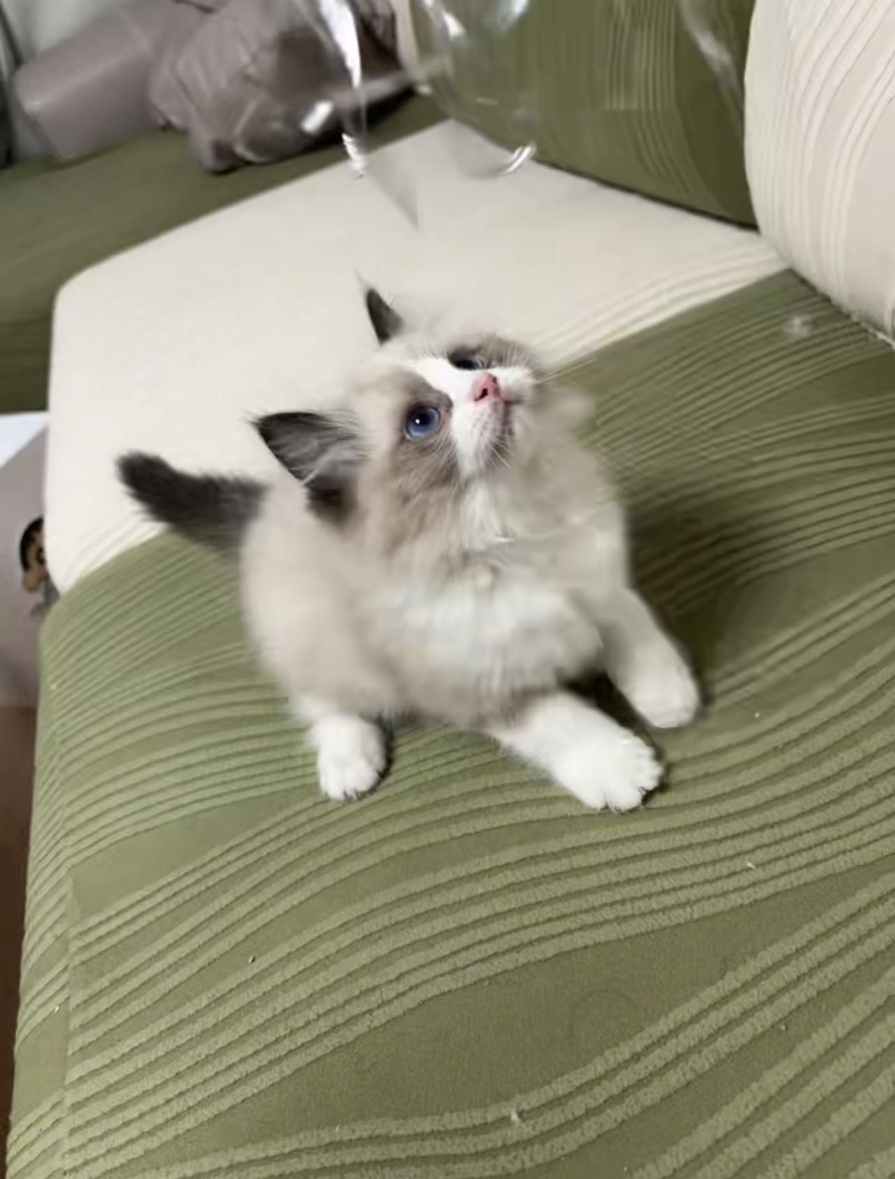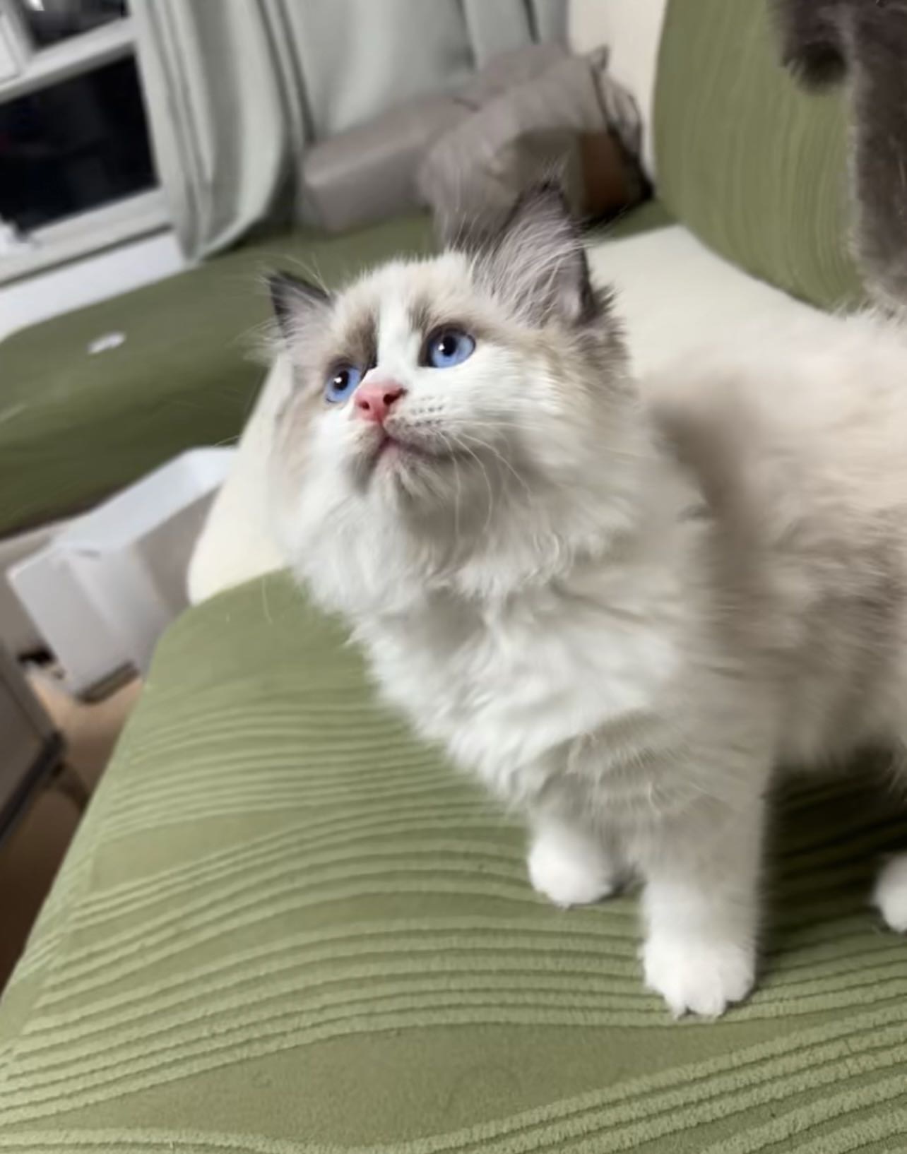 四只布偶猫找新家啦,蓝眼睛,毛量厚,性格温顺粘人,家养健康,两个月大,会用猫砂吃猫粮。支持自提,看中可聊,喜欢私聊~