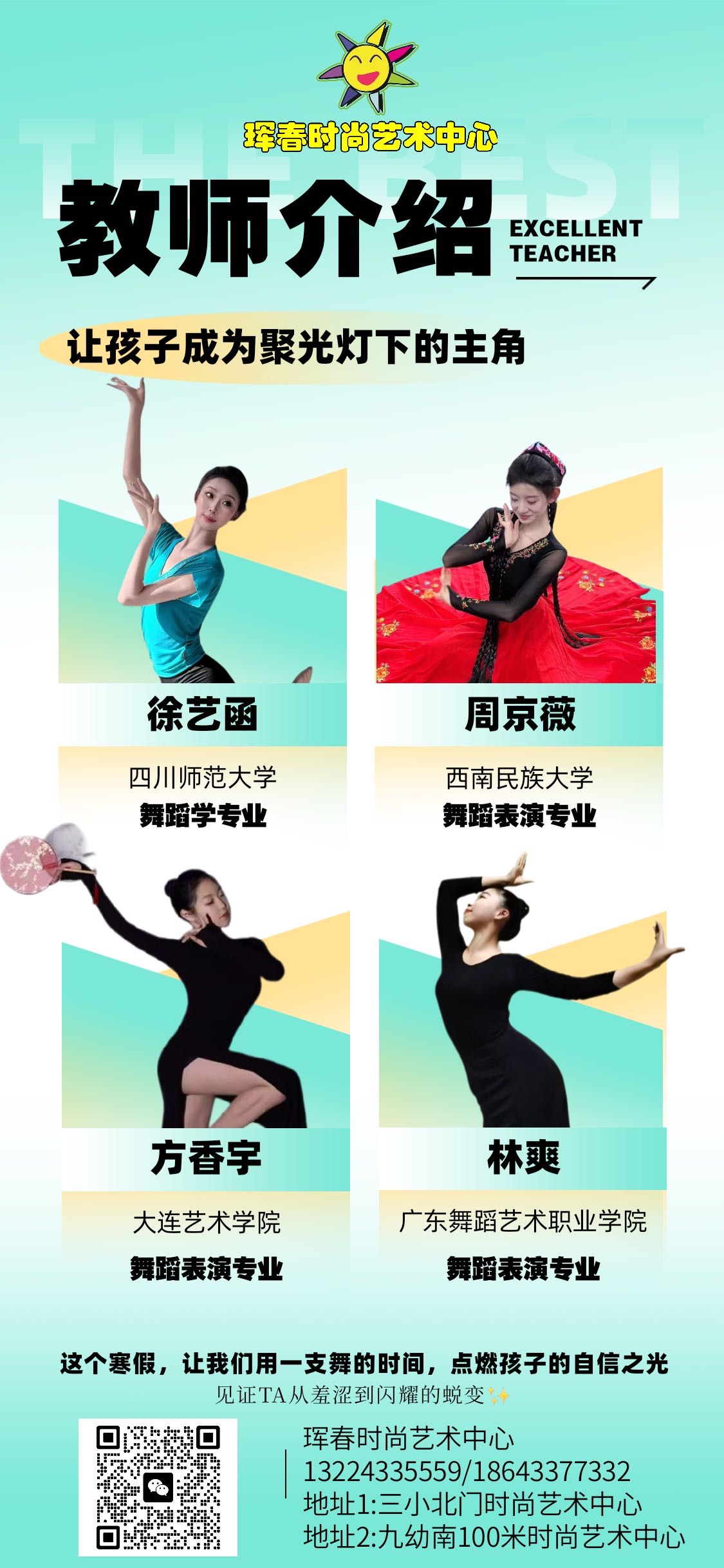 (均为15年以上舞龄、舞蹈专业教师、最新的教学内容、教学方法)