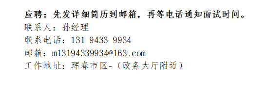 工作地址:珲春市区-(政务大厅附近)