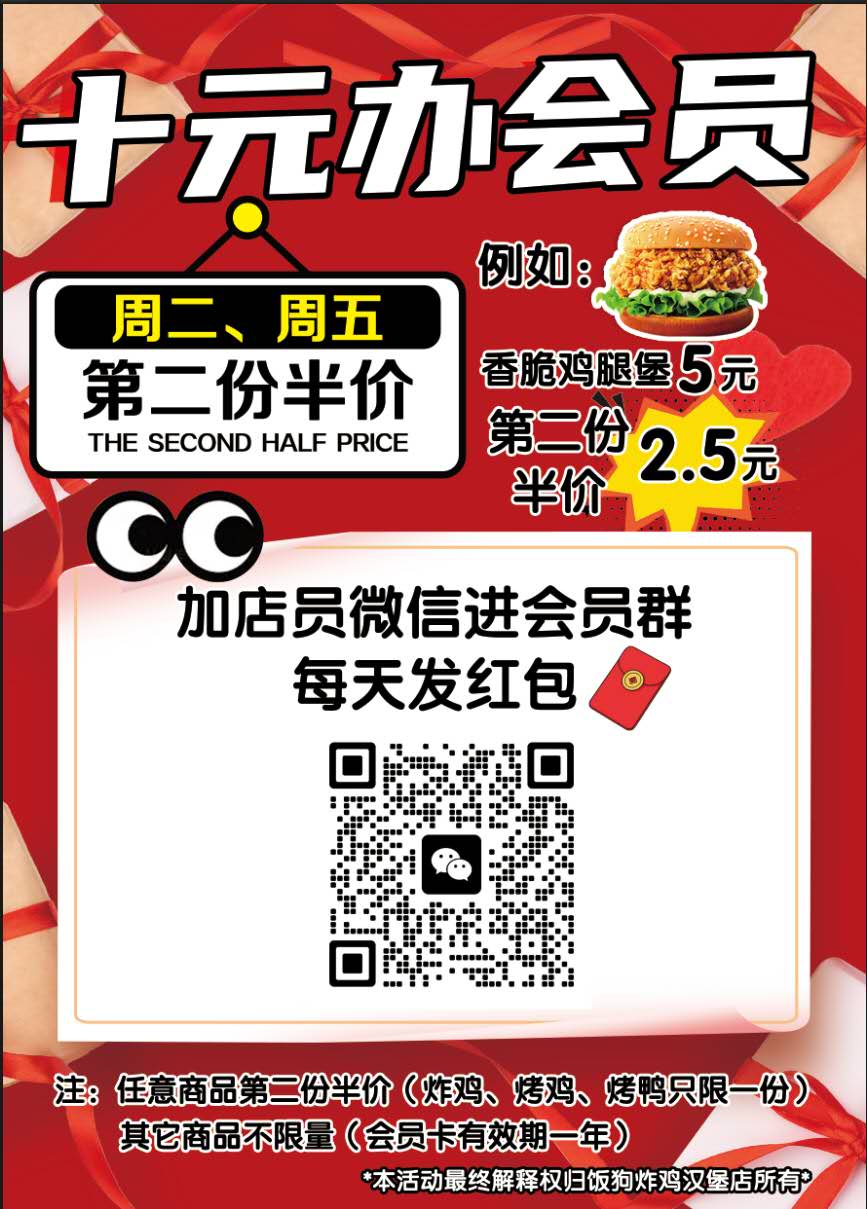 🍔饭狗汉堡炸鸡总店、分店(延边大学食堂二楼)