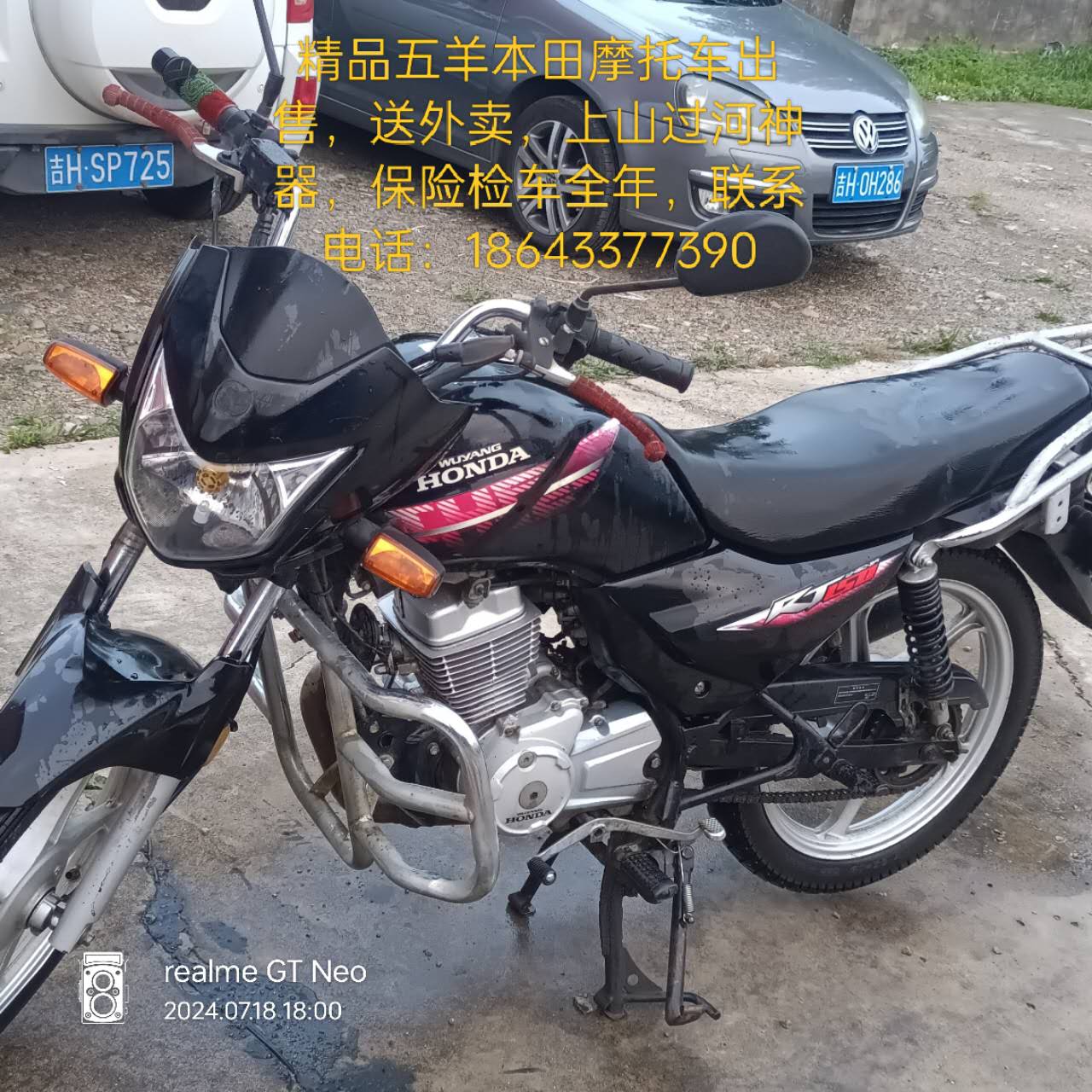 个人出售五羊本田150摩托车一台,送外卖,上山过河神器,检车,保险,全年,随时更名过户