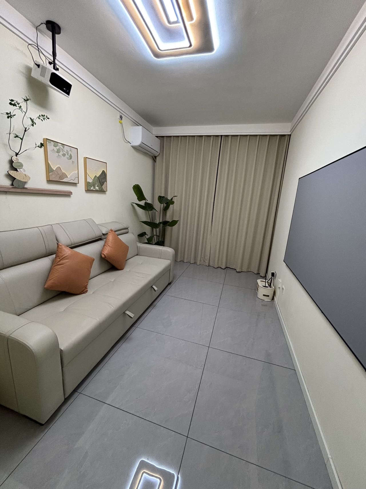 出租:龙源华府、4楼、70平、一室一厅、空调、投影、Wi-Fi、家电齐全、拎包入住、长租短租都可以、可以付一押一、