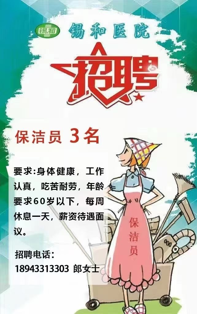 招聘岗位:住院部保洁(3名)